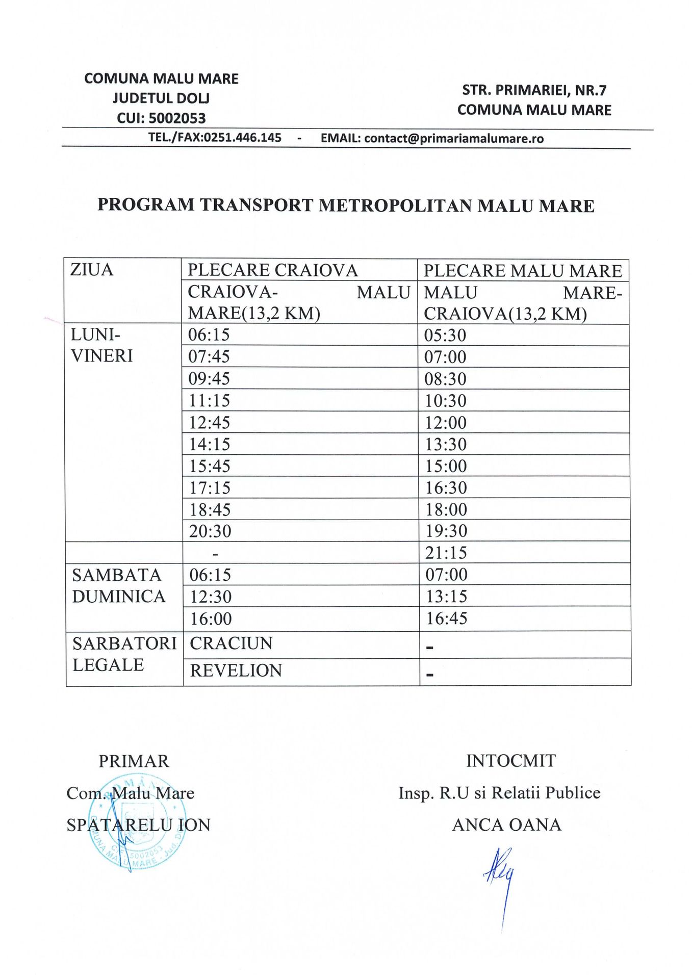 Primăria Comunei Malu Mare ©